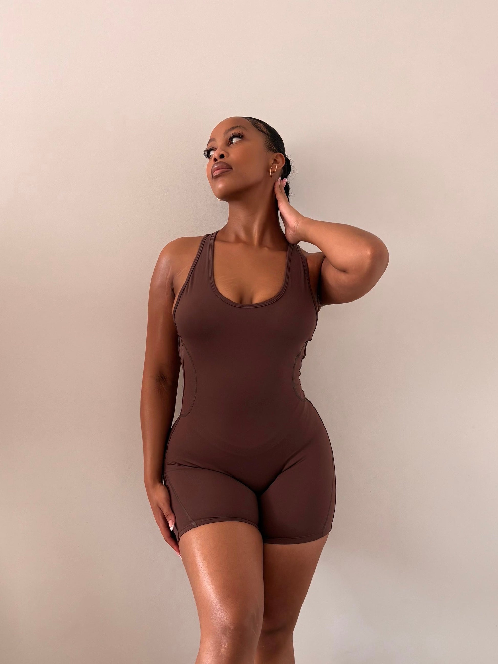 Discover the Dreambodi short jumpsuit - designed with a luxe blend of spandex and Nylon, it's perfect for everything from intense workouts to casual days. Flaunting a sleek racer back and cut-out panels, it's sure to become your new must-have!